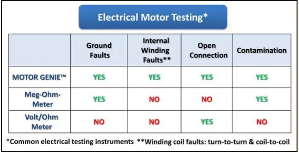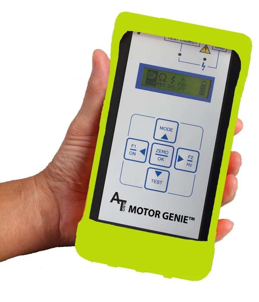 Forskning visar att nästan alla motorfel startar som fas/fas eller interna lindningsfel. Dessa fel visar sig inte med gängse metoder. Många använder i stället höga spänningar för att utföra en grundlig diagnos, med fara för att en begynnande svaghet i motorn, bränns till ett egentligt fel. Därfor har ALL-TEST Pro utvecklat Motor Genie, som kombinerar de klassiska mätningarna med avancerad motortest, så att begynnande svagheter uppdagas innan de utvecklas till egentliga fel. Är skadan skedd, kan en defekt motor självklart också diagnosticeras.