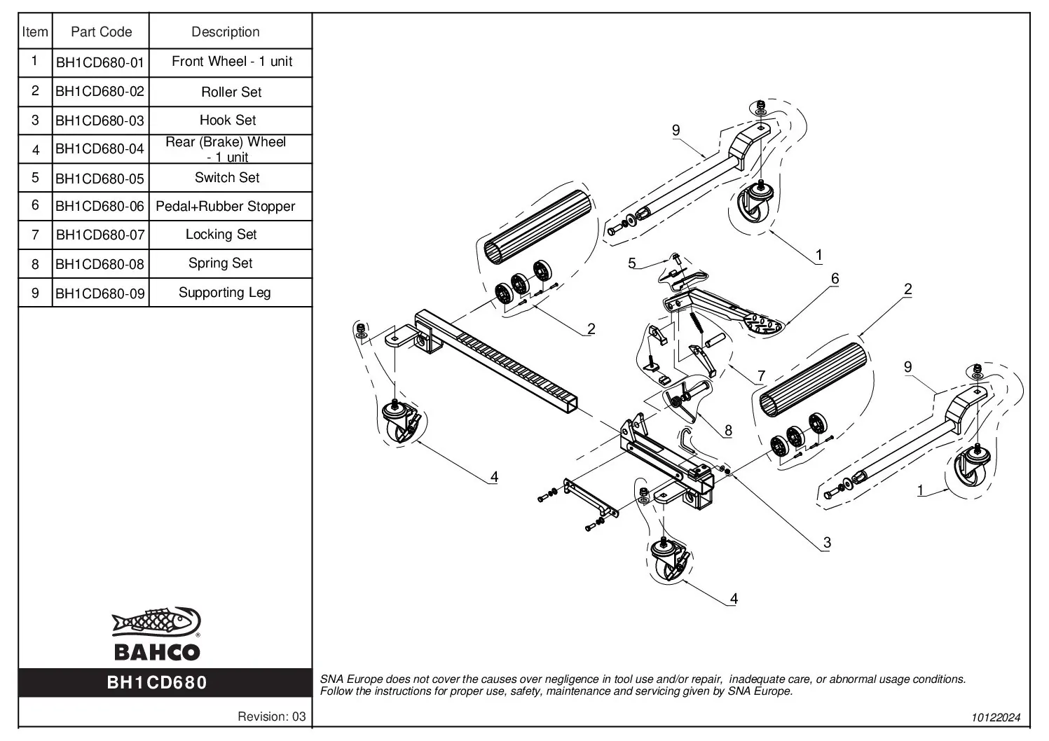 Reservdel BH1CD680-07 till Bahco BH1CD680, Transportvagn för bil. Säkerställ att det är korrekt reservdel genom att kika på sprängskissen.