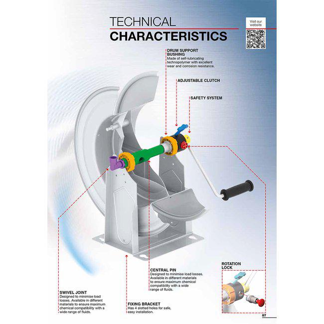 Handvevad slangupprullare i lackerad plåt finns med trumma i plåt och ABS. Upprullaren är avsedda för främst väggmontage och golvmontage. Frirullande vev, snurrar inte vid utdragning av slang, vilket minimerar risk för skada. Denna vinda kommer från Italien och håller högsta kvalité. Vi lämnar 5 års garanti på denna produkt.