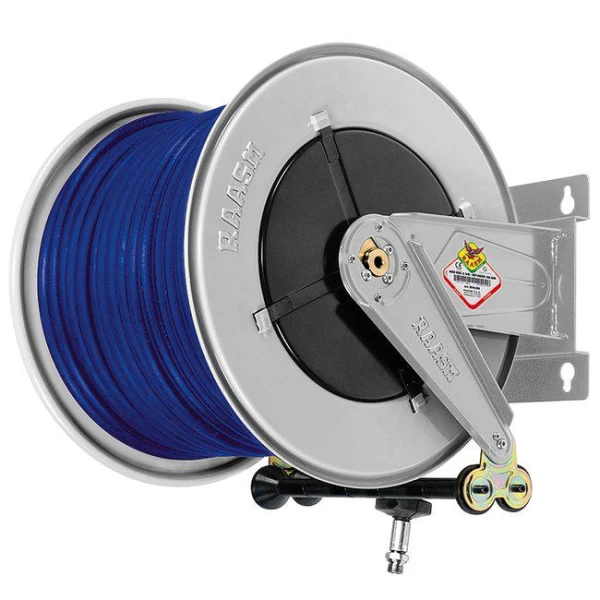 Slangupprullare för högtrycksvatten. Finns med trumma i plåt & ABS. Öppet utförande med fjäderretur, för montage på vägg, tak eller golv. Slangen återgår till inlindat läge vid ett lätt drag i den utdragna slangen. Utkastararmen kan monteras i ett flertal positioner beroende på installationsförhållandena. Utrustade med justerbar slangstopp.