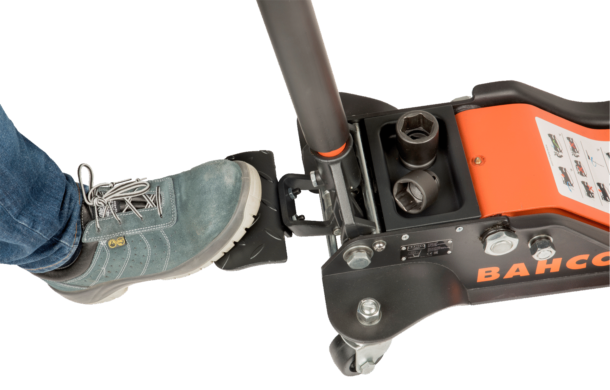 Lågprofildomkraft från Bahco. Kapacitet: 2 ton. Lämpad för lyft av ett stort antal standardfordon. Extra låg ingångshöjd på 70 mm och maximal lyfthöjd 490 mm. Stor rund fotpedal ger bra åtkomlighet från alla lägen. Dubbla kolvar minskar antalet pumpningar med 50 %. Dammskyddad kolv och gummiklädd lyftsadel. PU-överdragna stålhjul och bekvämt handtag. Säkerhetsventil och system mot överbelastning vid nedsänkning. Enligt 2006/42/EC + SS-EN 1494.