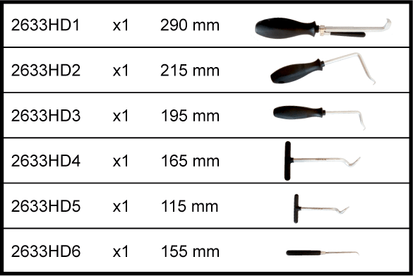 •Dessa olika former och längder gör det möjligt att ta bort alla typer av tätningar, o-ringar osv.