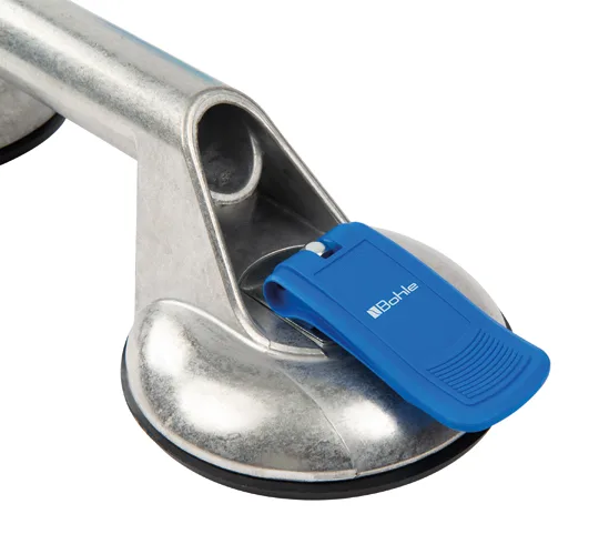 Kvalitetssuglyftaren BO 602.421 från märket Veribor® är det optimala hjälpmedlet för att lyfta och transportera gastäta plattmaterial. Suglyftaren bär en vikt upp till 60 kg inklusive dubbel säkerhetsfaktor oavsett material. Designen är elegant och samtidigt funktionell. Stora sugplattor fördelar vakuumtrycket optimalt på gummiskivans yttre greppområde. Vipparmens breda kontaktyta ger en ideal kraftöverföring vid vridning – oavsett om det är med handflatan eller tummen. Stora underläggsbrickor ger vipparmarna ytterligare stabilitet.