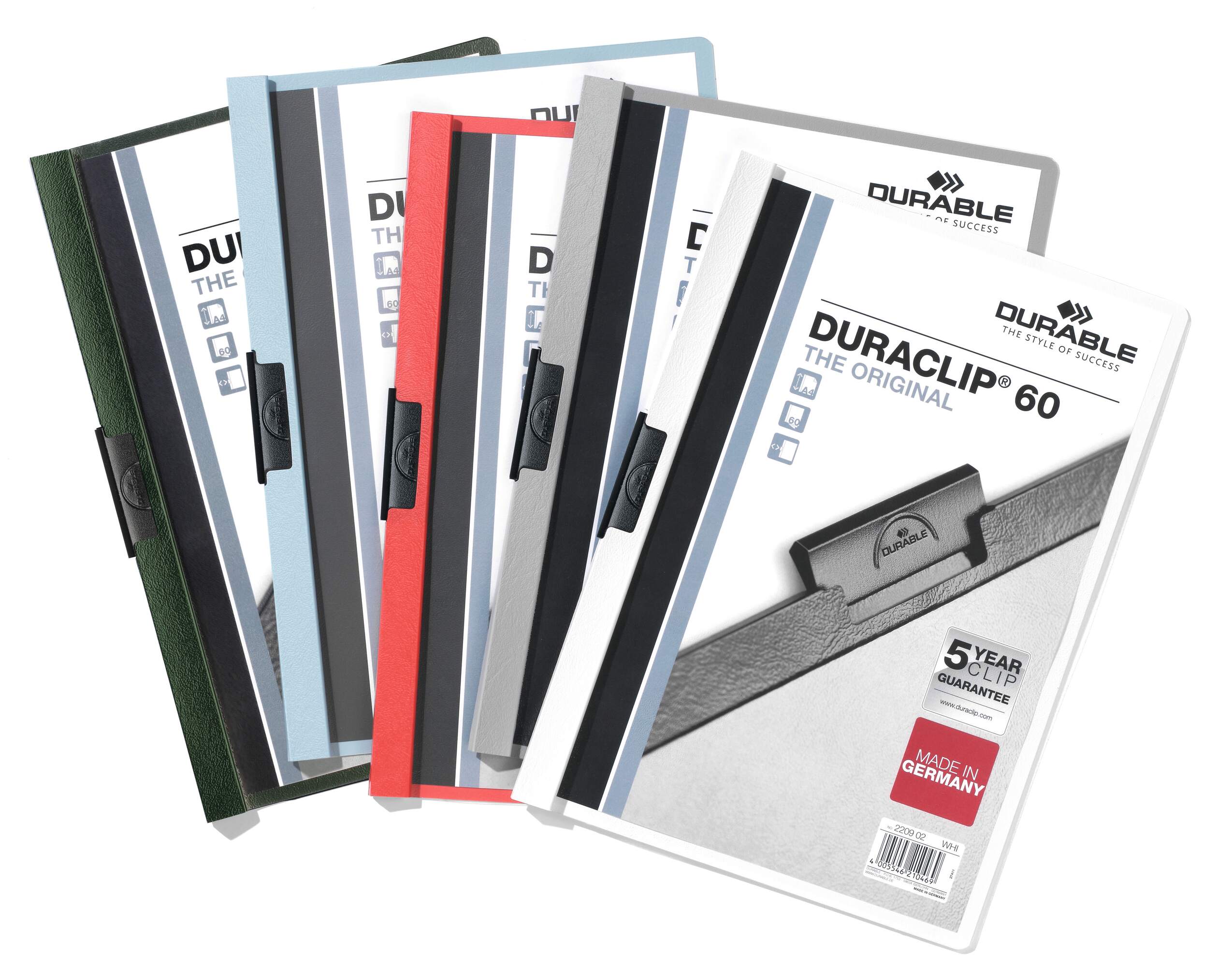 Mappen är perfekt för presentationer, offerter, rapporter osv. som inte behöver hålas. Den unika metallklämman håller dokumenten på plats. DURACLIP® 60 har en transparent framsida med färgad baksida och rygg och den rymmer upp till 60 A4-blad. Enkel att använda: dra ut klämman, lägg i dokumenten, skjut tillbaka klämman och dokumenten ligger på plats. Den unika klämman anpassar sig efter antalet blad – gång efter gång! 5 års garanti på klämman. Garantivillkor finns här: https://www.durable.se/sv_SE/service/garanti/duraclip-garanti/. Minska beställningsantal: 25 st.
