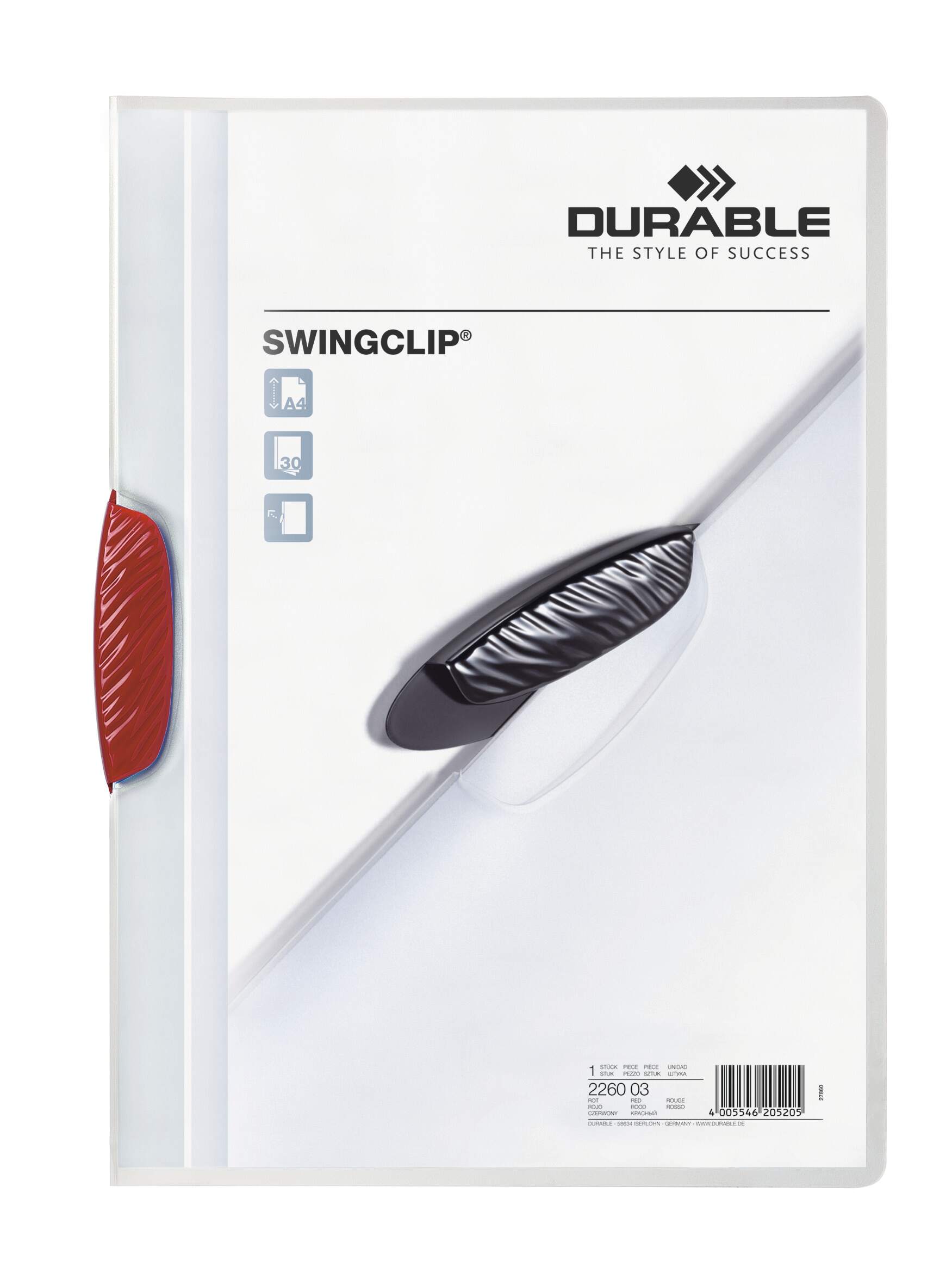 Klämmapp SWINGCLIP® 30 A4 transparent, röd