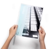 En klämskena binder ihop en presentation eller offert. Avrundade hörn underlättar isättandet av pappersbunten. Den här klämryggen är 297 mm lång vilket innebär att den täcker hela långsidan på ett A4-ark. Kan hålla ihop en bunt på 3 mm, vilket motsvarar ca 30 ark. Kan kombineras och kompletteras med ett plastomslag som skyddar fram och baksidan av pappersbunten. 10 st i en påse.
