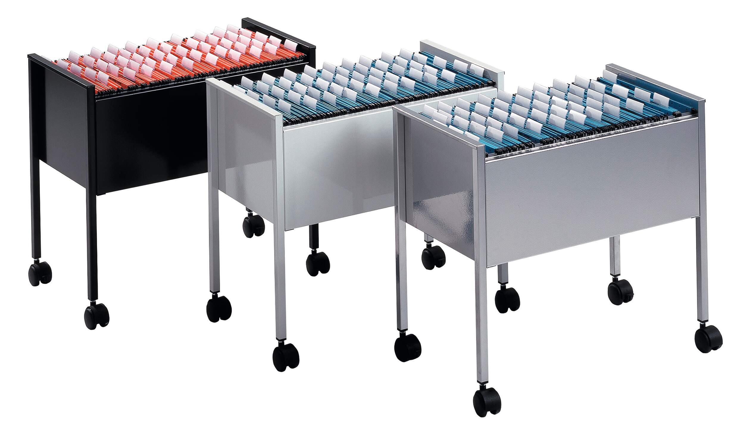 Arkivera och organisera dokument i hängmappar som förvaras i hängmappsvagnar med hjul. Metallvagn med reptålig polyesterbeläggning som rymmer ca 80 st hängmappar i A4-format. Vagnen är utrustad med 4 st svängbara länkhjul, varav 2 st har broms. Lätt att förflytta och stabil när den är “parkerad”. Levereras i platt paket med monteringsanvisning. Mått: 592 x 655 x 368 mm (HxBxD).