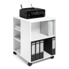 Mobil kontorshurts som är praktisk och användbar på kontor, i konferensrum eller för mobila arbetsplatser för förvaring av skrivare och andra kontorstillbehör. Hurts och hyllor är tillvekade av 16 mm slitstarka träskivor. En öppen del är 290 mm djup. De övriga 2 öppningarna är genomgående på hela hurstsens bredd 528 mm. Varje hylla har en maxbelastning på 25 kg och hyllplanen är justerbara i 32 mm intervaller. 4 st svängbara länkhjul, varav 2 st har broms. Lätt att förflytta och stabil när den är “parkerad”. Levereras i platt paket med monteringsanvisningar. Total maxbelastning 60 kg. Mått : 748 x 528 x 592 mm. (HxBxD)