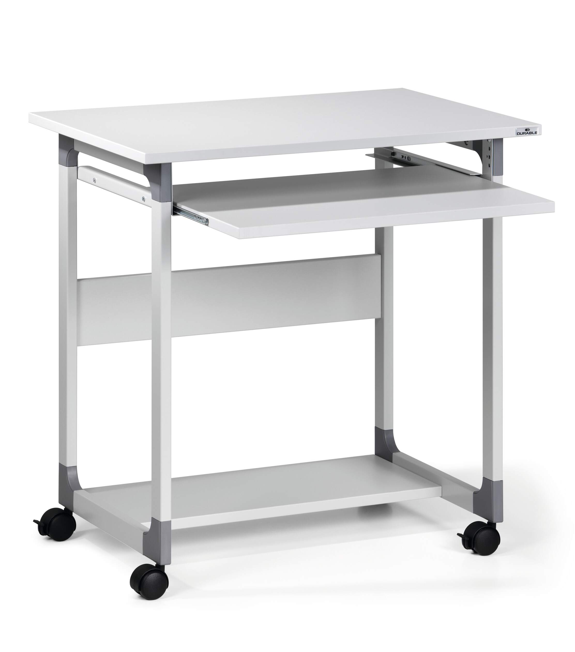 Datorbord på hjul som är praktiskt och användbart på kontor, i konferensrum eller för mobila arbetsplatser. Slitstarka hyllplan där tangetbordshyllan är utdragbar. Höjden på tangentbordshyllan kan justeras mellan 550-630 mm för en bekväm arbetsställning. Metallstomme med reptålig polyesterbeläggning och fiberglasförstärkta plasthörnor. 4 st svängbara länkhjul, varav 2 st har broms. Lätt att förflytta och stabil när den är “parkerad”. Levereras i platt paket med monteringsanvisningar.Mått översta hyllan: 750 x 534 mm (B x D). Mått tangentbordshylla: 588 x 420 mm (B x D).Mått bottenhylla: 610 x 272 mm (B x D).Totala mått: 770 x 750 x 534 mm (H x B x D)