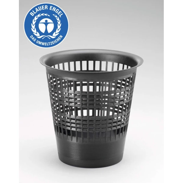 Den runda papperskorgen med greppkant – ECONOMY med färgkod 058 – är certifierad med den tyska miljömärkningen Blue Angel. Märkningen ställer höga krav på miljövänlig produktdesign och är sedan 1978 en pålitlig guide för en mer hållbar konsumtion. Plasten som denna papperskorg är tillverkad av består av en hög andel insamlad återvunnen plast samtidigt som den har lång livslängd och är fullt återvinningsbar. Designen på papperskorgen ECONOMY ger en minskad materialanvändning i produkten. Kapacitet: 13 liter. Mått: Ø 28,5 cm Höjd: 28 cm. Minsta beställningsantal: 6 st.
