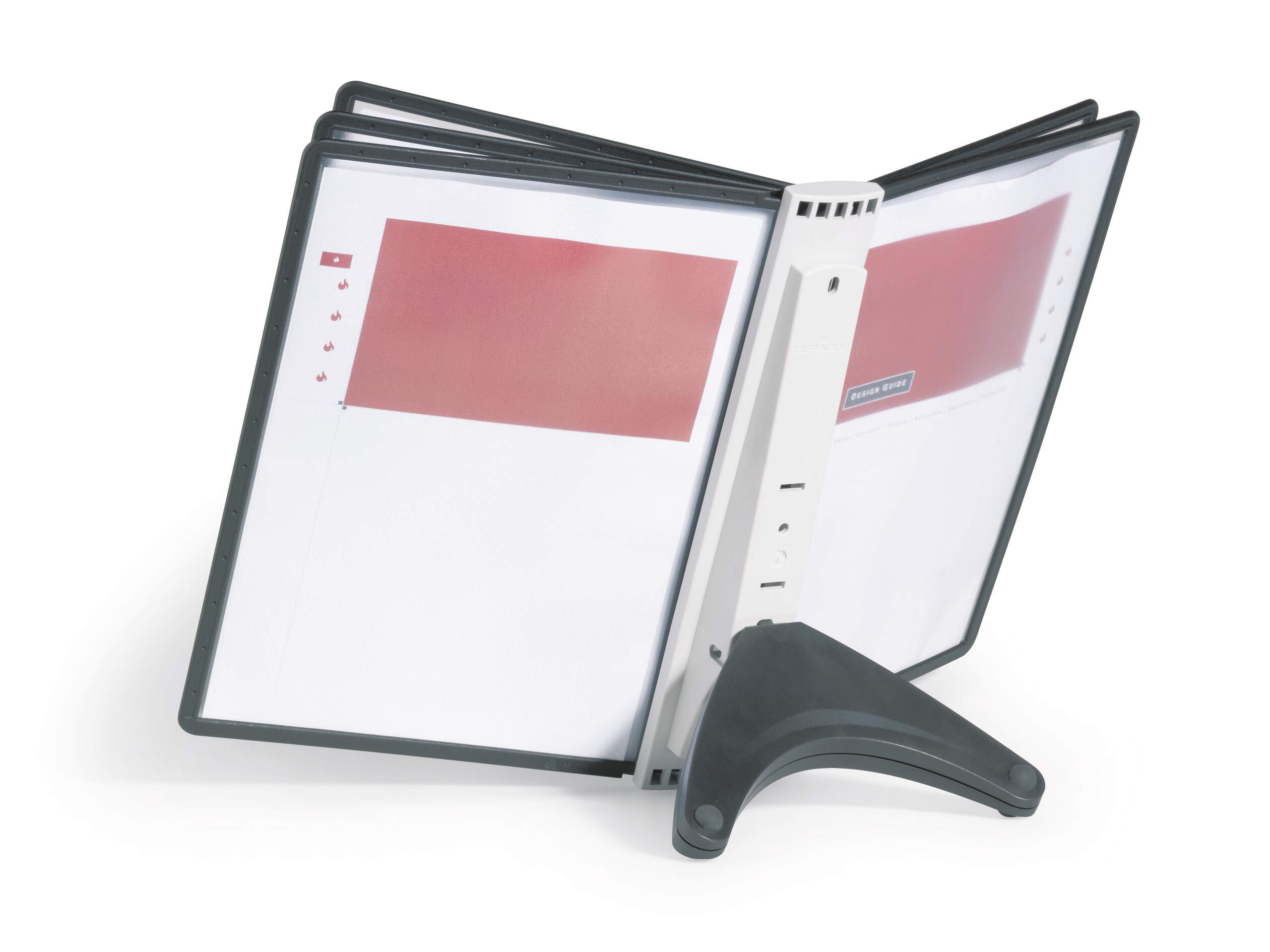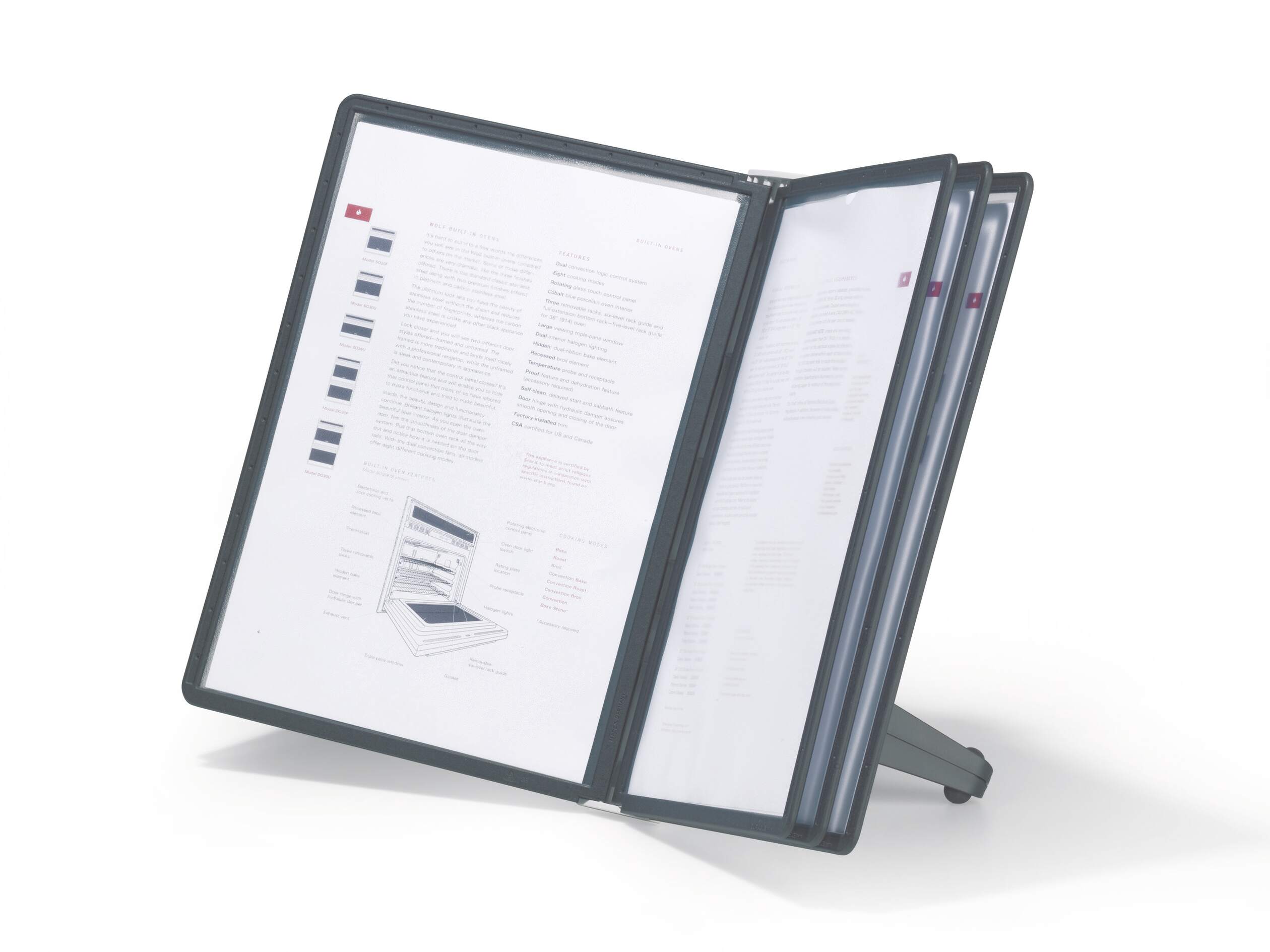 SHERPA® SOHO, som står för small office – home office, är ett litet bordställ med 5 st reflexfria, skanningsbara plastfickor av polypropylen för dokument i A4-format. Vid insättning och borttagning av fickorna är det bra att böja fickan lite försiktigt i mitten längs med inre långsidan så går det lätt att sätta dit och ta bort fickan utan att piggarna i hållaren skadas. Gummitassar gör att den står stadigt. 5 års garanti. Garantivillkoren finns här: https://www.durable.se/sv_SE/service/garanti/garanti-foer-sherpa-vario/