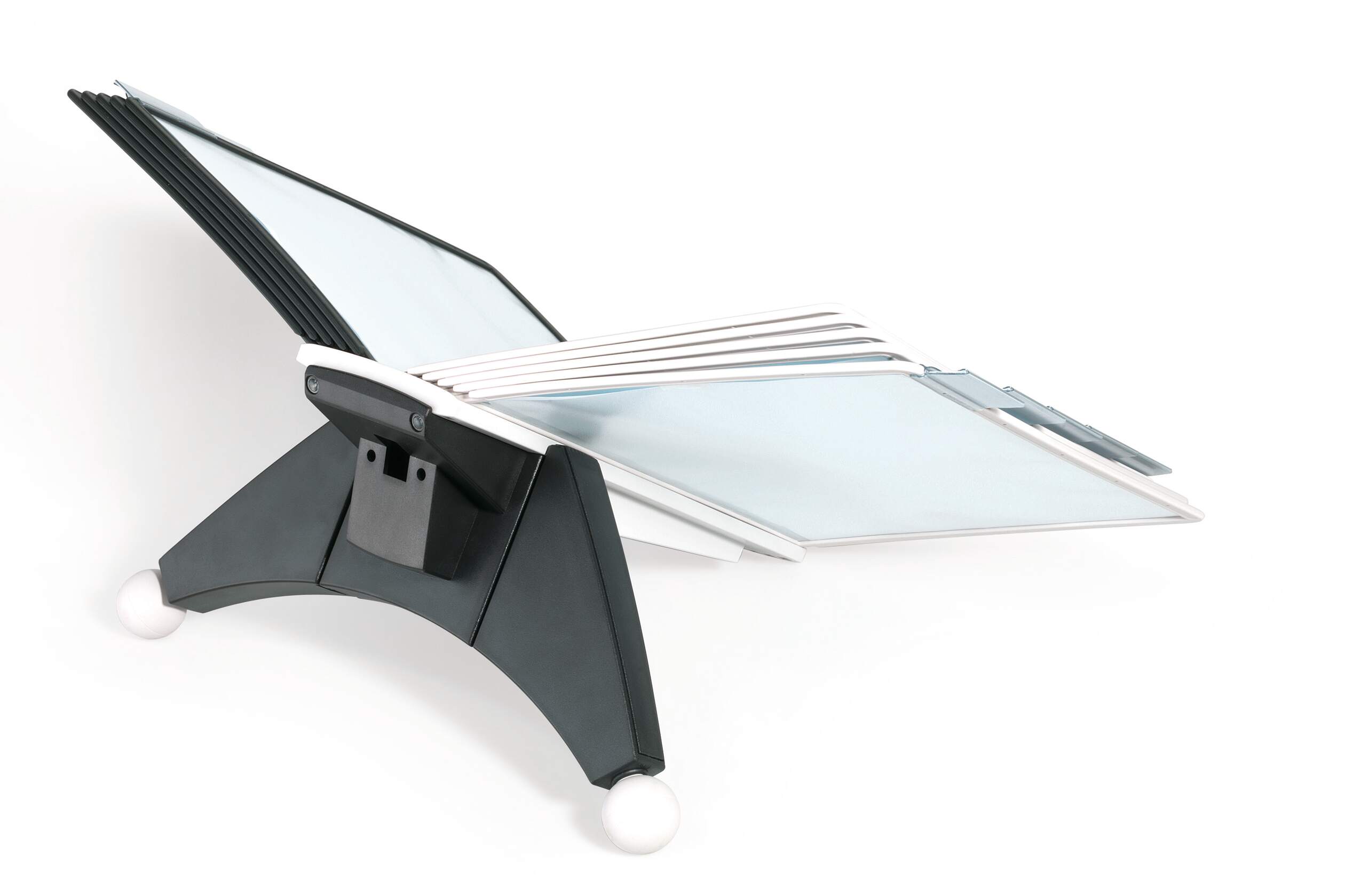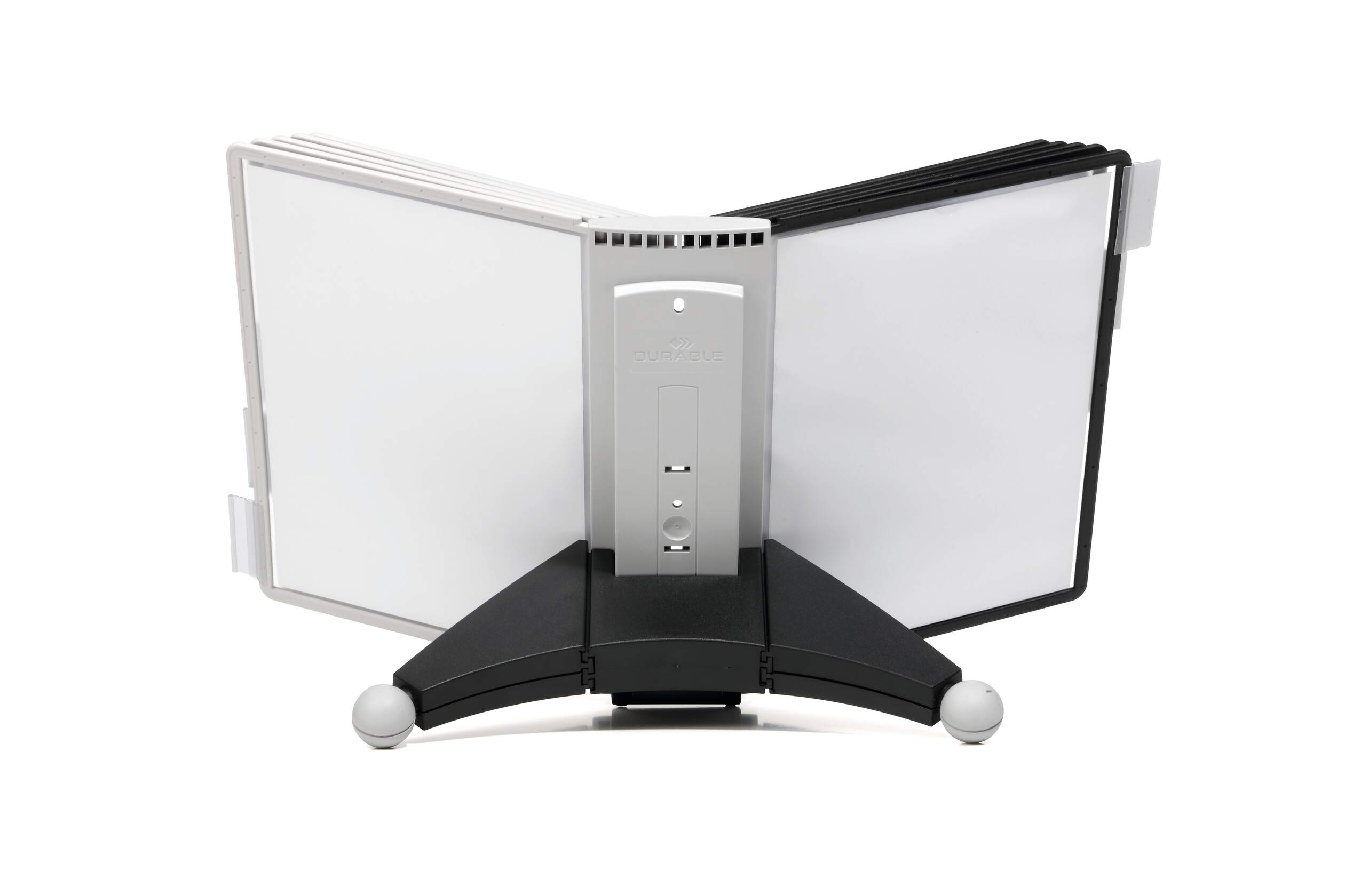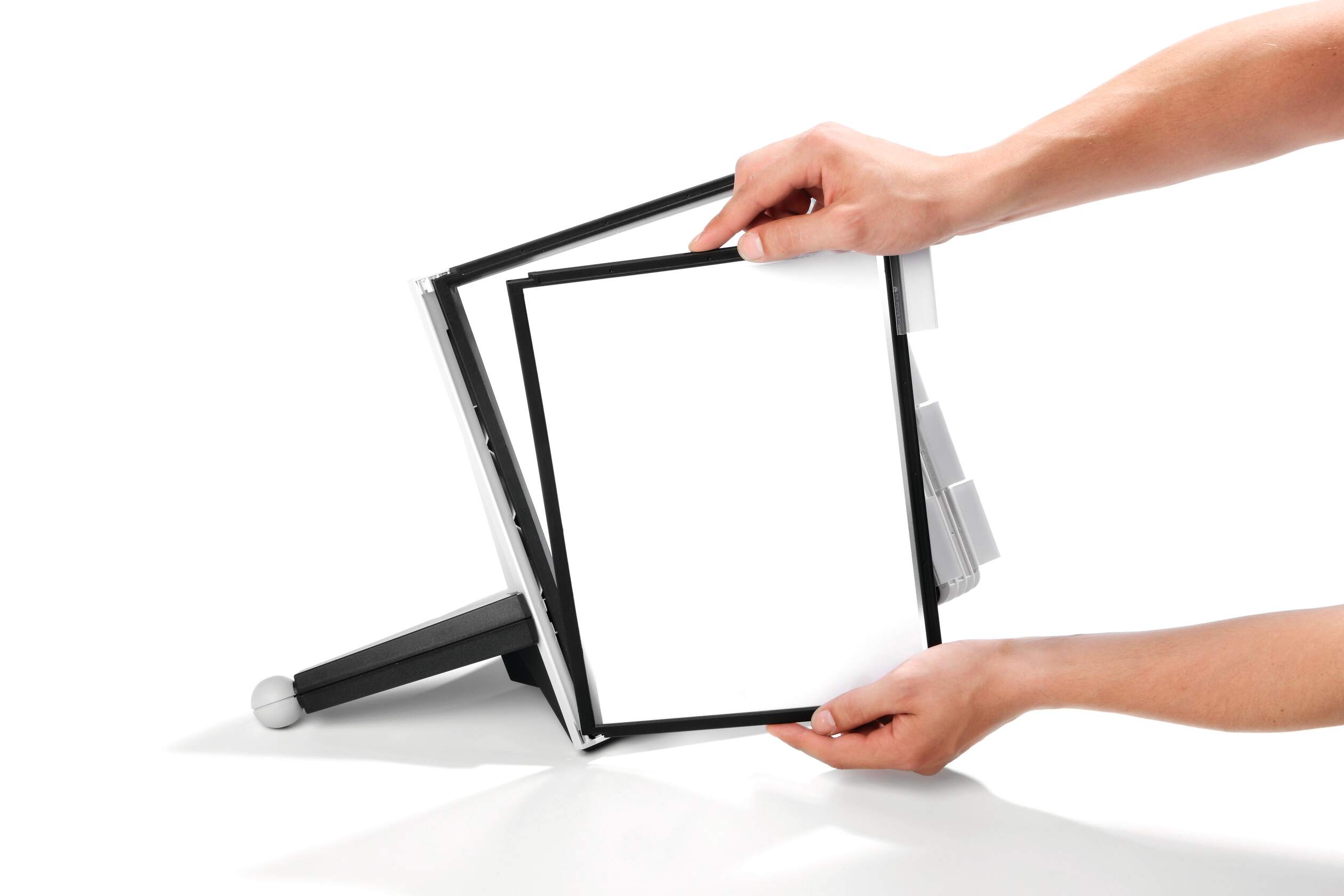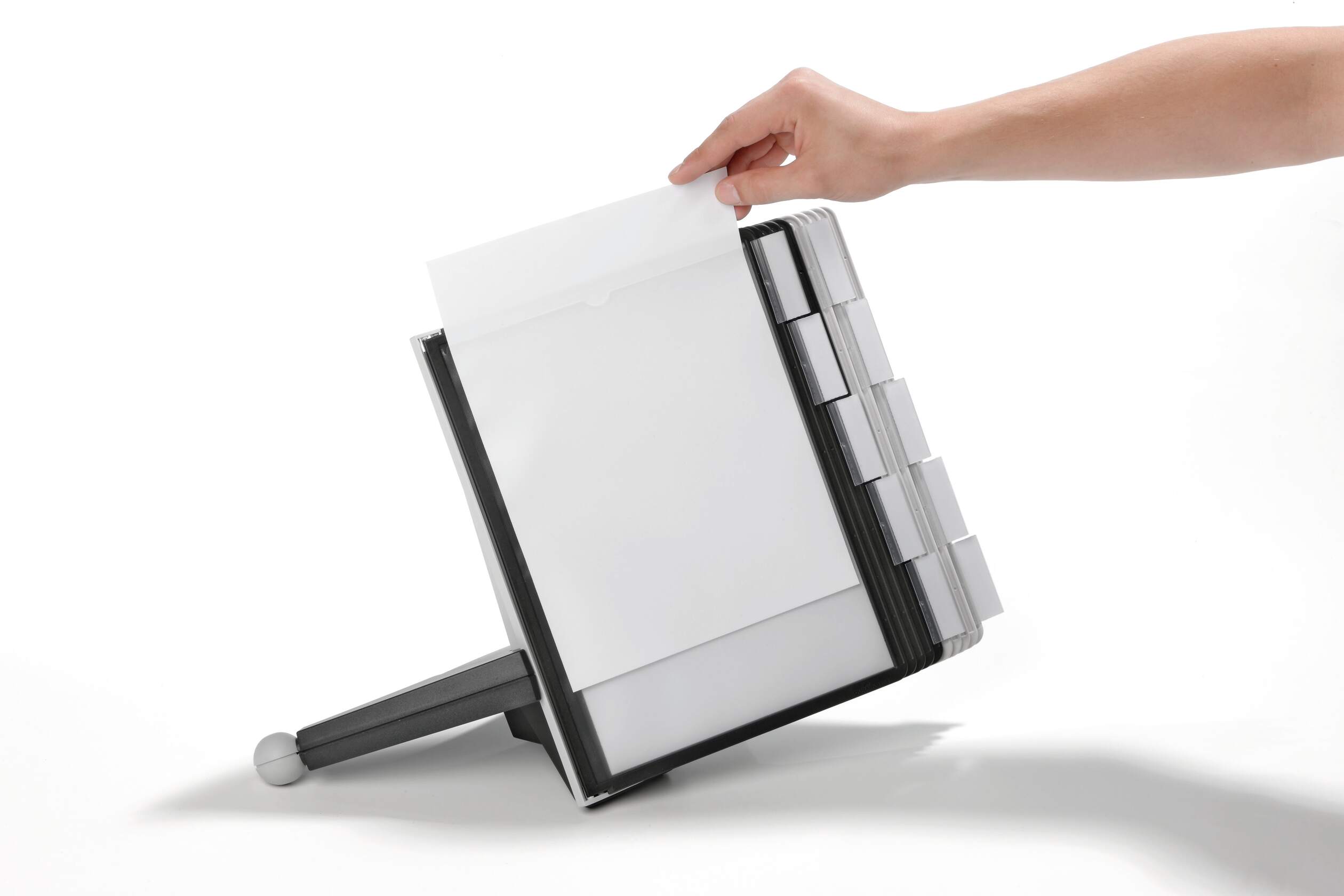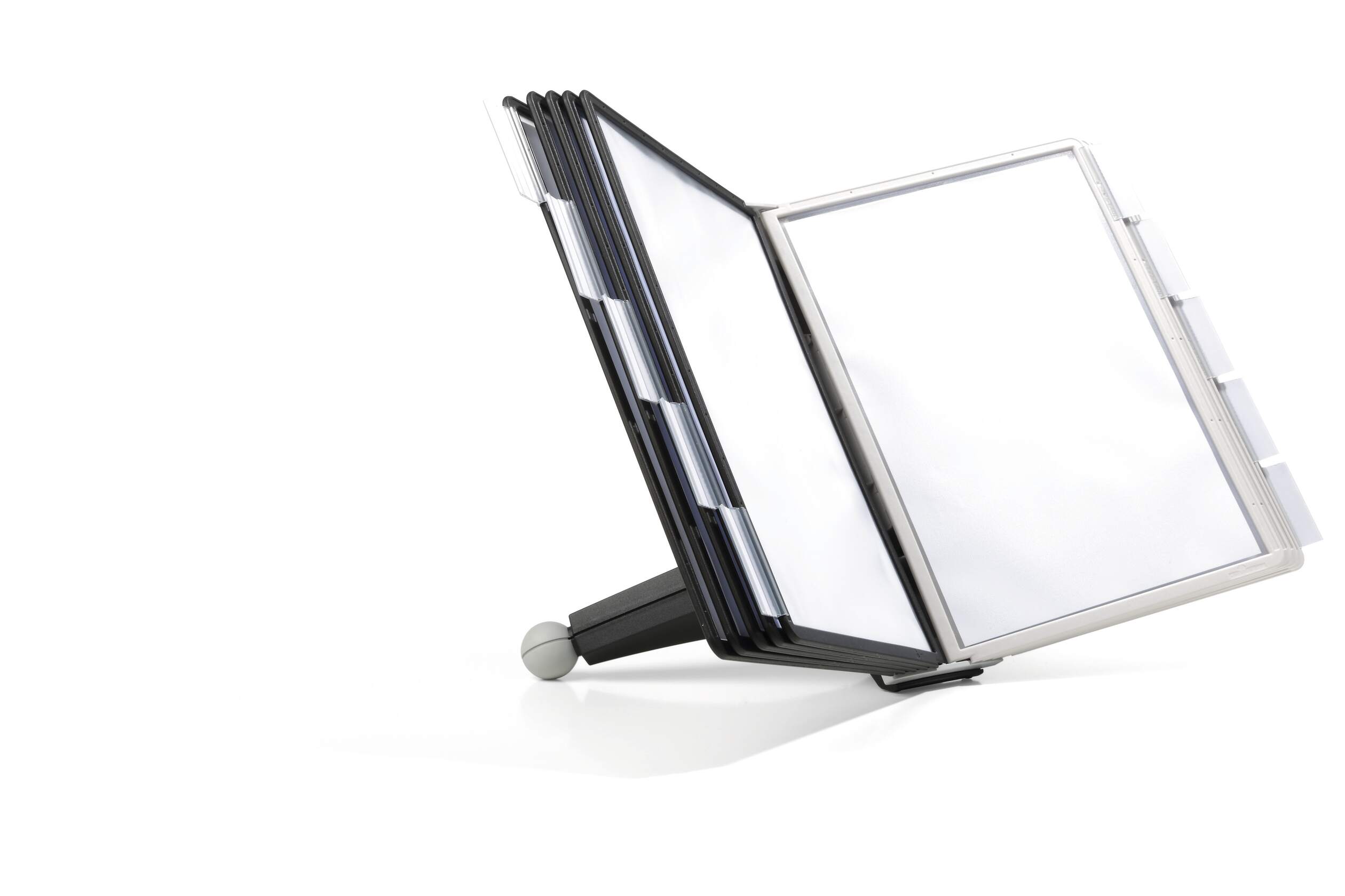 SHERPA® TABLE är ett komplett bordställ med 10 st reflexfria, skanningsbara plastfickor av polypropylen (5 gråa och 5 svarta) för dokument i A4-format. Kan byggas ut med en eller flera utbyggnadsdelar för större kapacitet. Flyttbara 58 mm rubrikhållare ingår. Vid insättning och borttagning av fickorna är det bra att böja fickan lite försiktigt i mitten längs med inre långsidan så går det lätt att sätta dit och ta bort fickan utan att piggarna i hållaren skadas. De stora gummifötterna gör att den står stadigt. 5 års garanti. Garantivillkoren finns här: https://www.durable.se/sv_SE/service/garanti/garanti-foer-sherpa-vario/