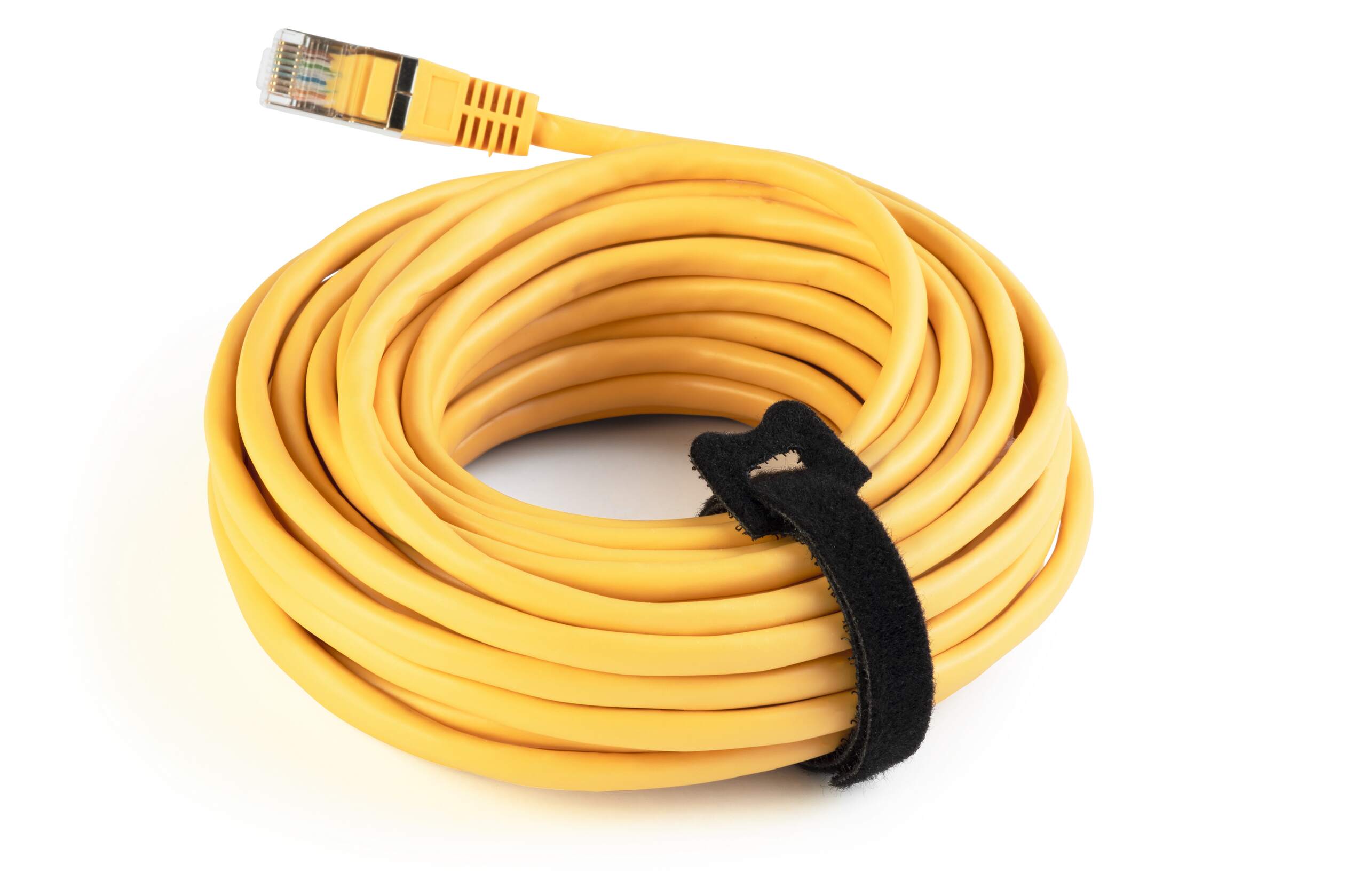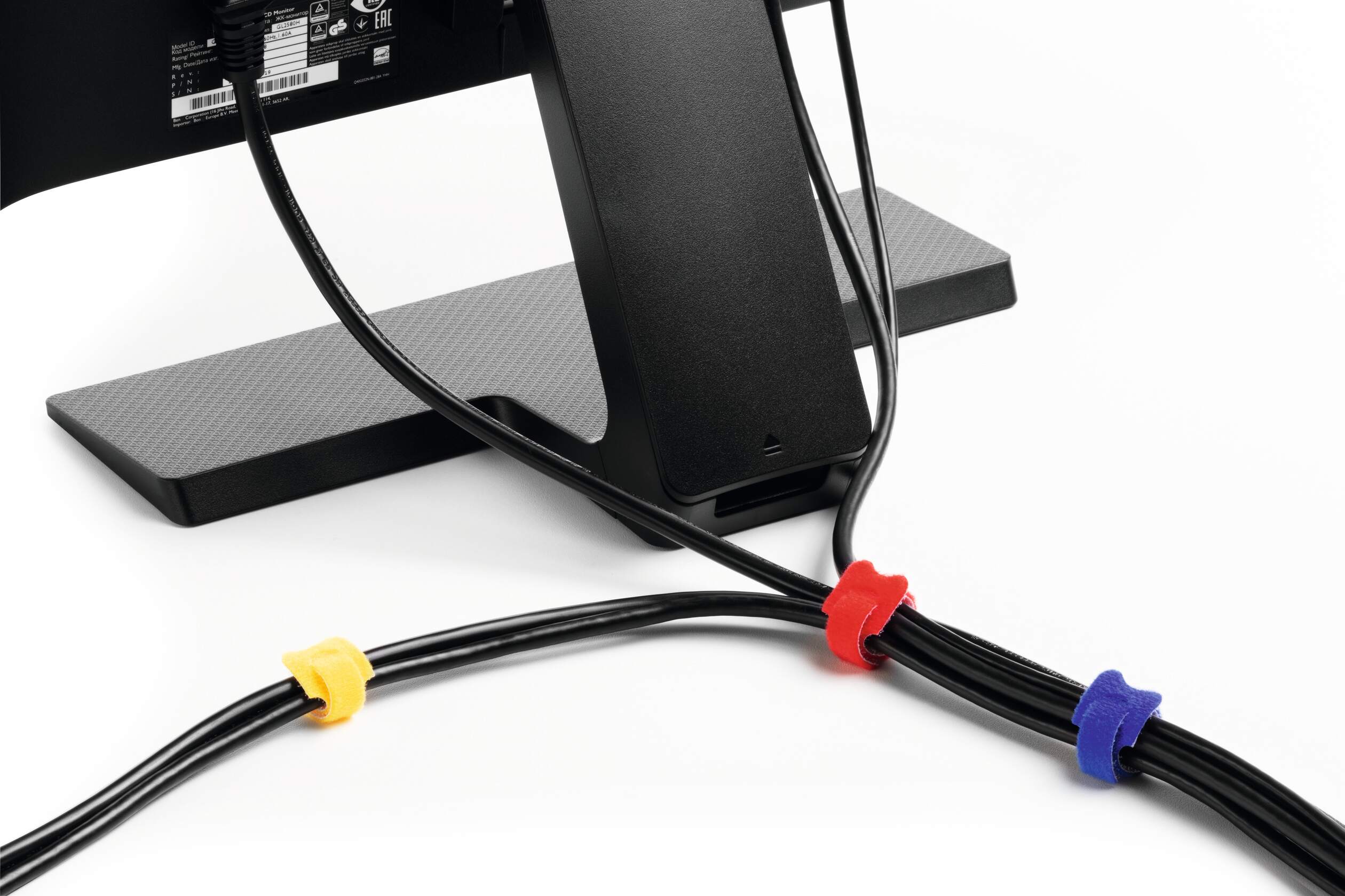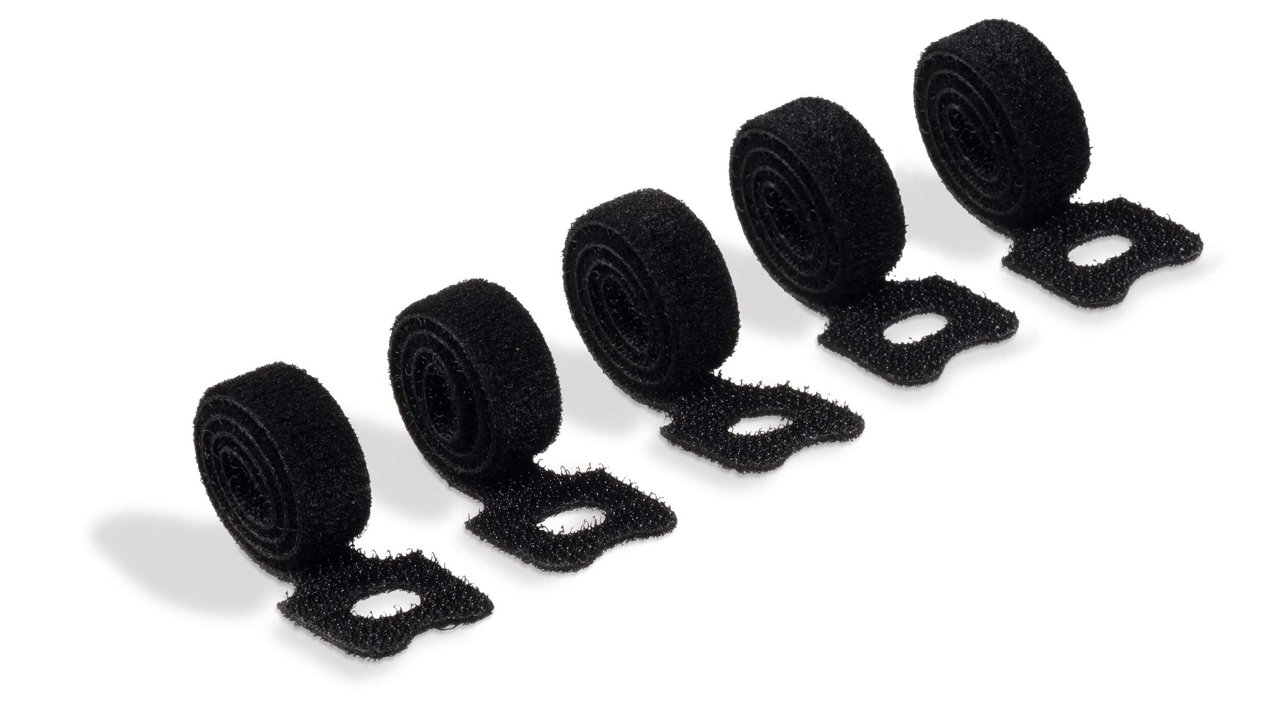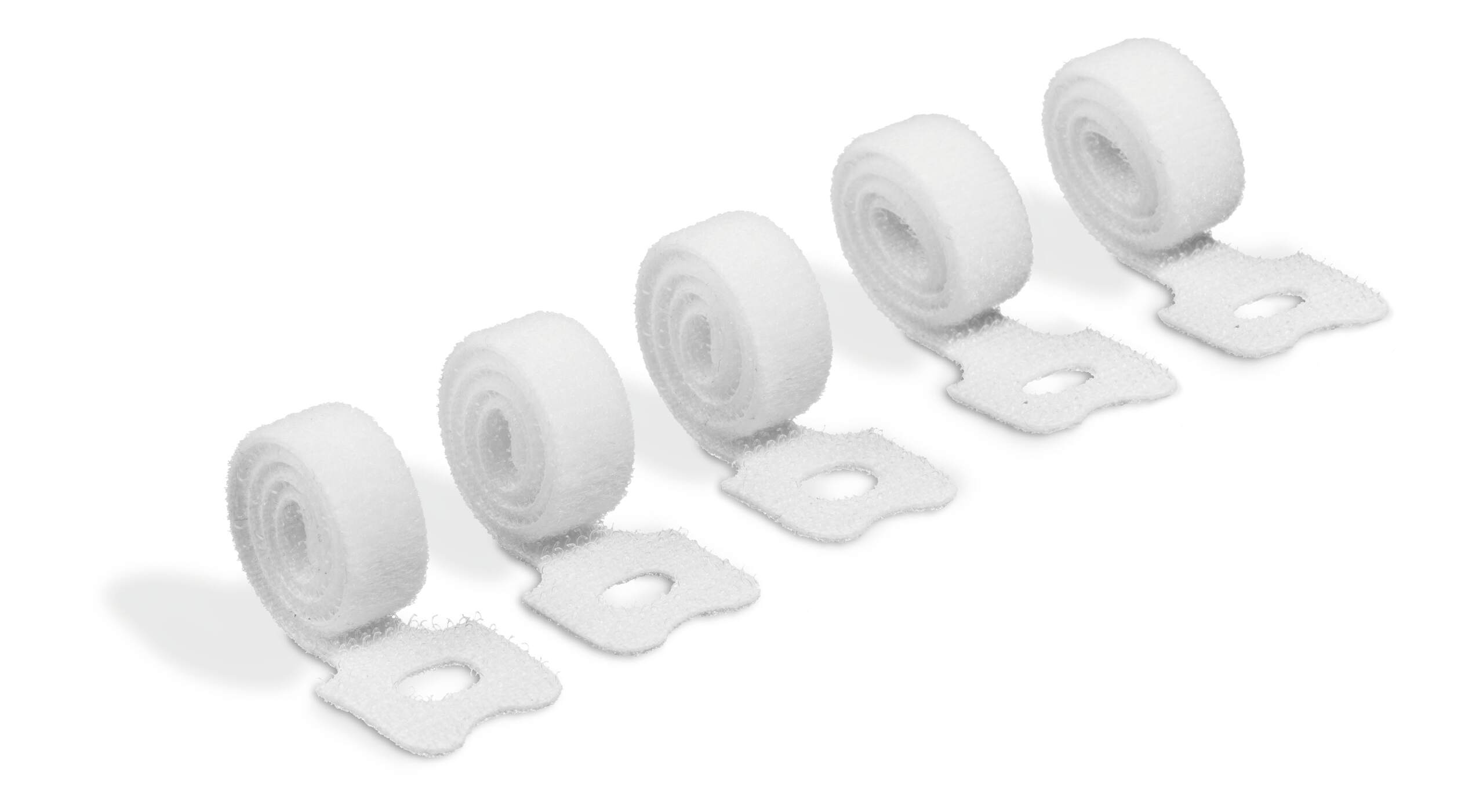 Det 1 cm breda kardborrbandet kan dras åt hårt tack vare öglan. Bandet kan användas flera gånger. Förpackning med en av varje färg vit, svart, blå, röd och gul. Mått: 20 x 1 cm (L x B). Förpackning om 5 stycken.