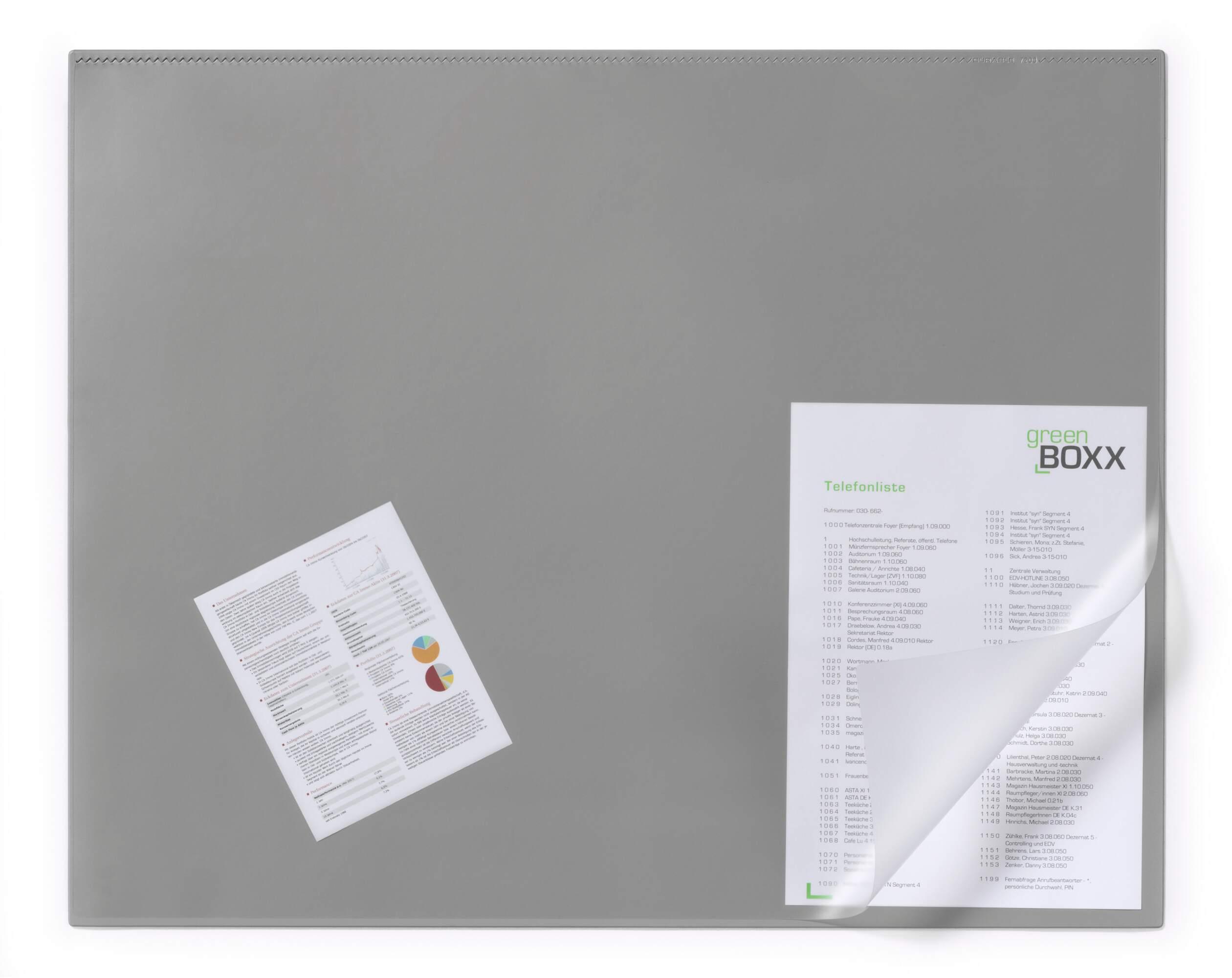 Skrivunderlägg 650×520 mm. transparent klaff, grå