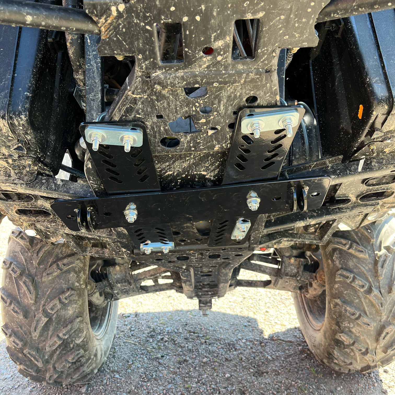 Universell fästplatta för frontmonterade redskap till ATV. Passar de allra flesta fyrhjulingar och används till vårt frontmonterade klippaggregat som du hittar HÄR!