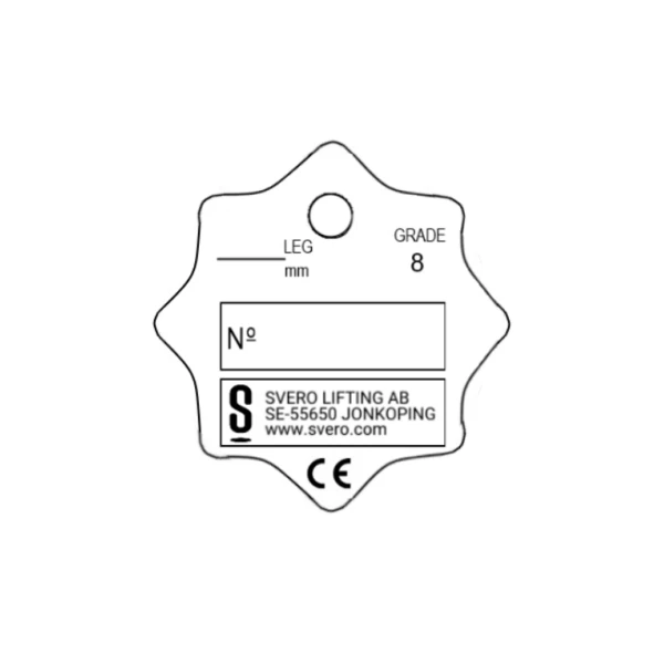 Märkbricka från svenska tillverkaren Svero. I rostfritt utförande. Avses användas vid märkning av Sveros klass 8-sortiment.