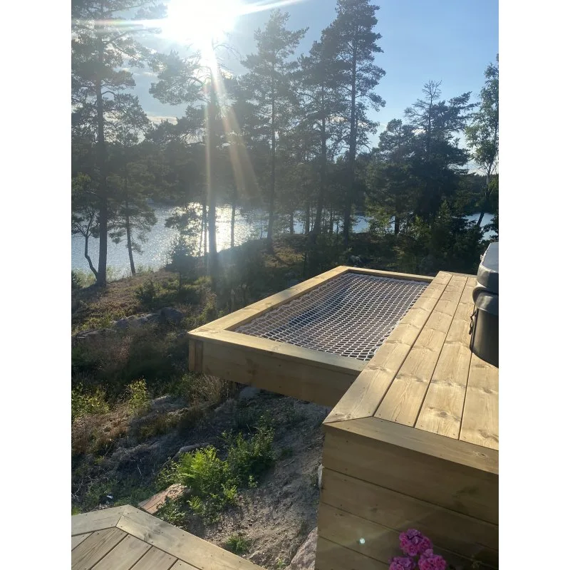 Vårt loftnät är en pålitlig och mångsidig lösning som är idealt för flera användningsområden. Med en maska på 45 mm och en garngrovlek på 5 mm är nätet konstruerat för att möta höga krav på hållbarhet och säkerhet. För att säkerställa nätets styrka och slitstyrka är det även försett med en 12 mm nylonlina runt ytterkanten för extra förstärkning. Med en maskhållfasthet på imponerande 320 kg per maska är det enkelt att hantera tunga belastningar. Vårt loftnät används bland annat som lyftnät för vikter upp till 2 ton. Kommer i standardfärg vit, men finns även i: svart, grönt, rött, blått och beige/hampa. Nätet tillverkas på beställning och skickas ca 3 veckor efter lagd order.