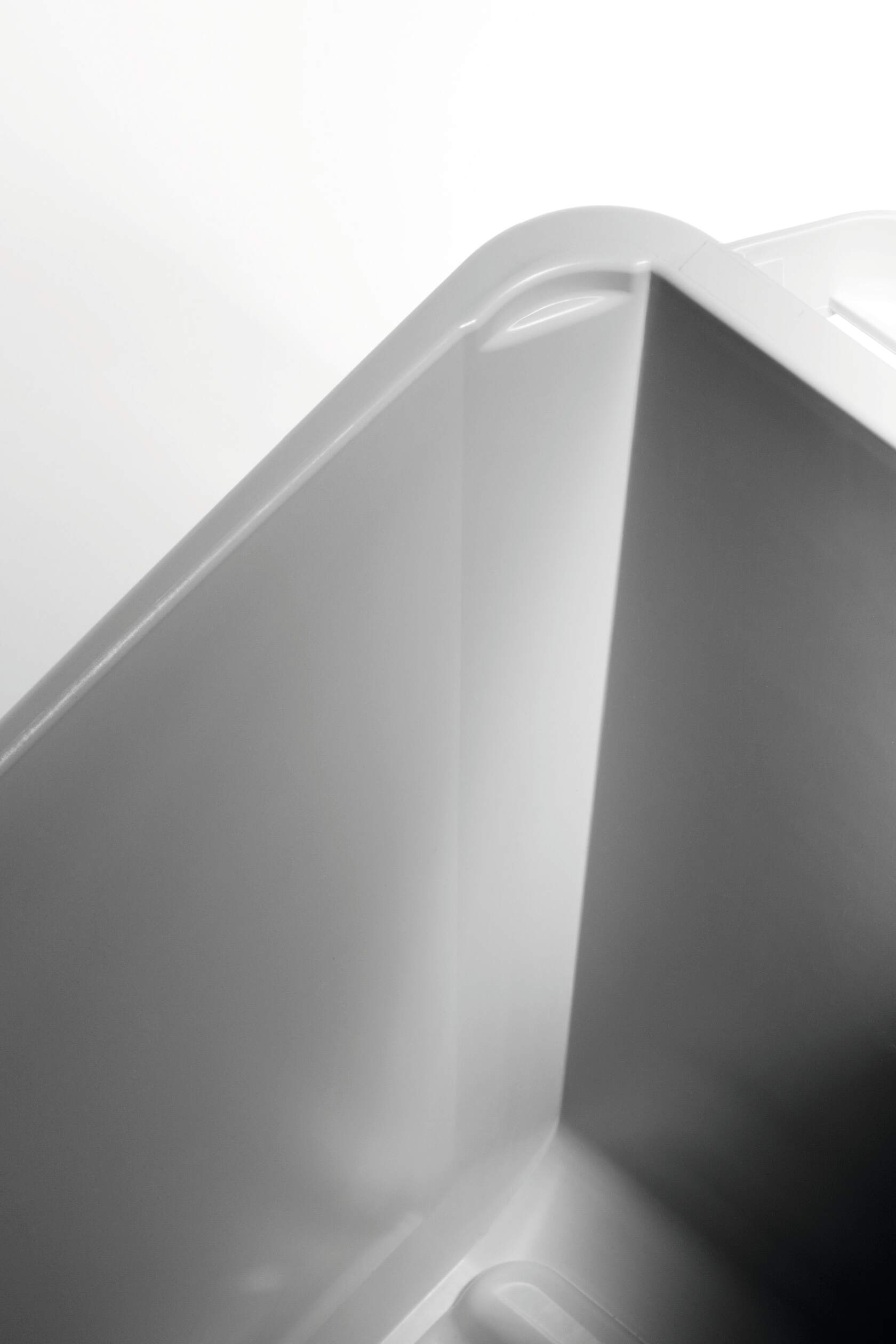 Livsmedelsgodkänd avfallstunna, stor papperskorg, återvinningssortering, förvaring av foder, korg för upphittade kläder, mjölbinge – det finns många användningsområden för DURABIN 60 tunnan med greppvänliga handtag med dräneringshål. Kompletterat med lock och/eller vagn som gör tunnan enkelt flyttbar, eller väggfäste så att tunnan kan hängas på väggen och göra golvytan fri, utökas användningsområdena ytterligare. Rymmer 60 liter. Livsmedelsgodkänd. Fasade kanter förhindrar vakumeffekt vid stapling. Undersida med greppurtag förenklar lyft och tömning. Mått (HxBxD): 600 x 590 (inkl handtag) x 280 mm. Tillbehör: Lock artikelnummer 1800497 i olika färger, gångjärnslock artikelnummer 1800500 i olika färger, lock med hål för pantburkar 1800501020, lock för returpapper 1800502040, vagn för en tunna 1801666010, vagn för två tunnor 1801667010, väggbeslag 1801662023, passande sopsäckar 999111859.